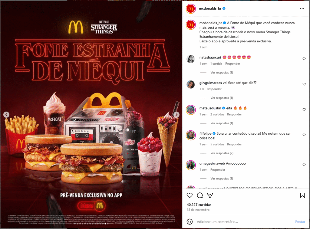Assim, Stranger Things está exatamente nesse lugar: onde a nostalgia, o afeto, a estética e o storytelling se misturam e criam um espaço fértil para as marcas se aproximarem do público de um jeito marcante (e ainda lucrar muito com tudo isso).