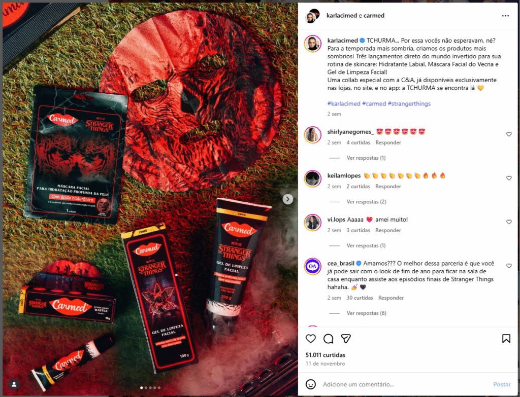 Para aproveitar o hype de Stranger Things, a marca lançou uma linha completa em parceria com a C&A, unindo skincare ao Mundo Invertido.