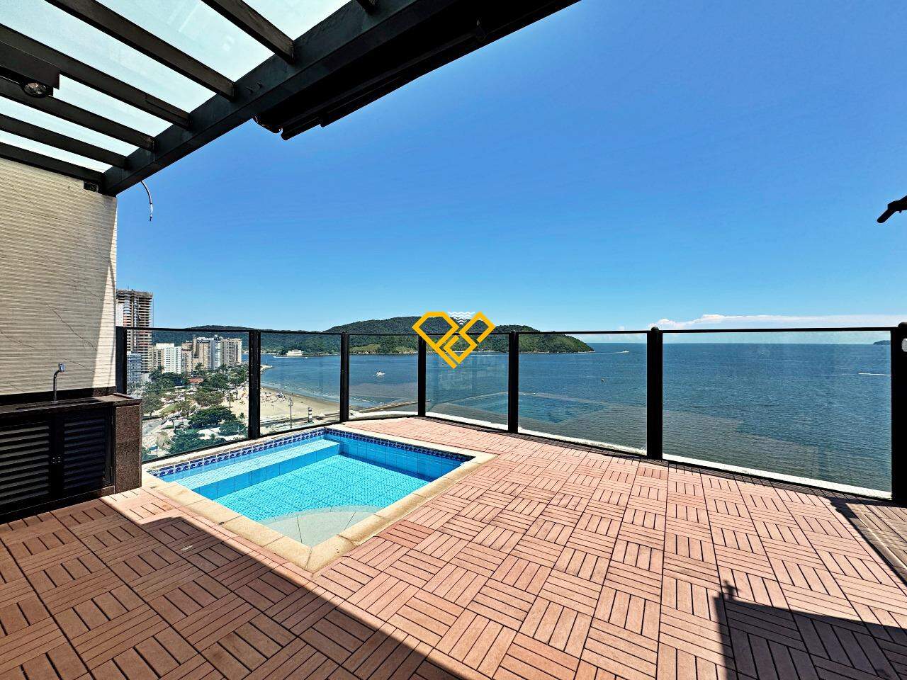 Descrita como “ideal para viver experiências únicas com família e amigos”, a cobertura duplex tem 374 m², três suítes, piscina privativa, escritório, camarim e cinco vagas de garagem. Além disso, há portas blindadas, sistema de câmeras e duas salas amplas de estar e jantar.
