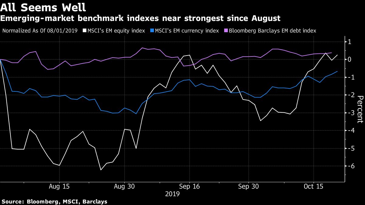 À primeira vista, as cotações de ativos de mercados emergentes dão a impressão de que tudo vai bem.