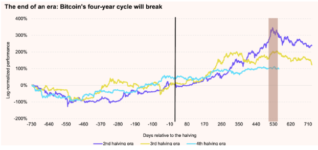 Este ciclo começa a mostrar sinais de ruptura em relação ao padrão tradicional dos halvings de quatro em quatro anos.