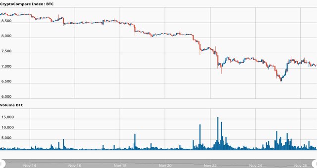 O Bitcoin caiu 11% em relação ao seu preço no fechamento da sexta-feira 22 e estava sendo negociada abaixo de US$ 6.600 às 13:50 UTC em Hong Kong, de acordo com os preços compostos do Cryptocompare. É a primeira vez desde maio que o Bitcoin fica abaixo da marca dos US$ 7.000.