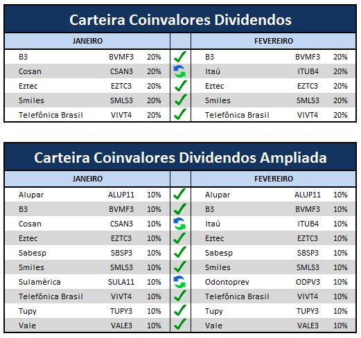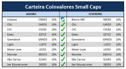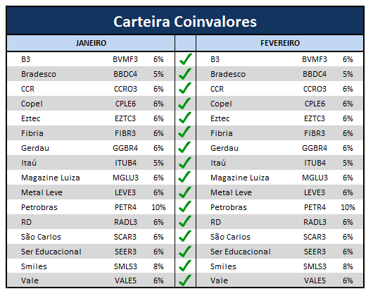 A Coinvalores realizou poucas trocas em suas recomendações de ações para fevereiro, com exceção da Carteira Coinvalores que permaneceu inalterada, segundo relatório enviado a clientes.