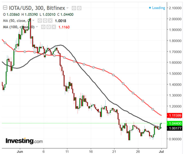 O preço doa IOTA em 1º de junho era de US$ 1,9178, antes de cair aproximadamente 43% e fechar o mês em US$ 1,0450. A moeda digital registrou o menor nível desde novembro de 2017 em US$ 0,89173 em 29 de junho. Atualmente, é a nona moeda em circulação com uma capitalização de mercado de cerca de US$ 2,9 bilhões.