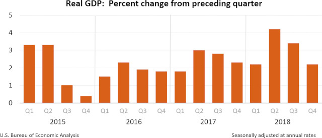 4 – PIB dos EUA cresceu 2,2% no 4º tri, abaixo do consenso de 2,4% – As agências de estatística dos EUA divulgaram, nesta quinta-feira, indicadores econômicos importantes sobre a saúde da principal economia do mundo. O PIB do país subiu 2,2% no 4ºtrimestre, abaixo do consenso de 2,4%. Leia Mais
