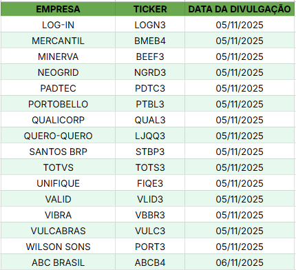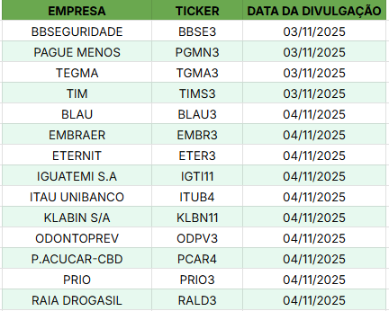 Durante essa semana repleta de balanços, o guia elaborado pelo BTG pode ser uma “bússola” para os investidores para que, assim, eles possam tomar as melhores decisões de investimento ao longo da temporada de resultados do 3T25.