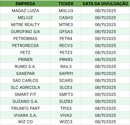 Mas estas são apenas algumas das empresas avaliadas pelo banco. Além delas, o Guia de Resultados do 3T25 mostra o que esperar do balanço de mais de 130 empresas.
