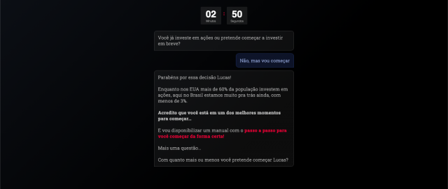 Como dissemos, serão três perguntas simples e rápidas, que têm o objetivo de entender o seu perfil de investimento.
