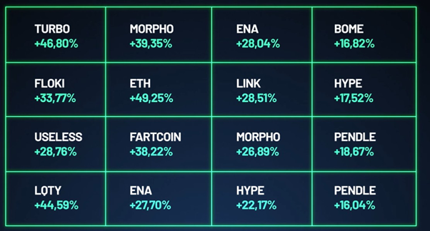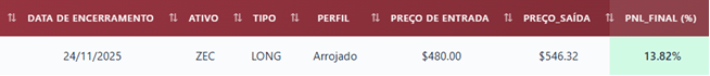 O que aconteceu entre 12 e 24 de novembro é um exemplo claro disso. Enquanto o bitcoin recuou 13,16%, uma operação recomendada por Rebelo e sua equipe gerou um ganho de 13,82%.