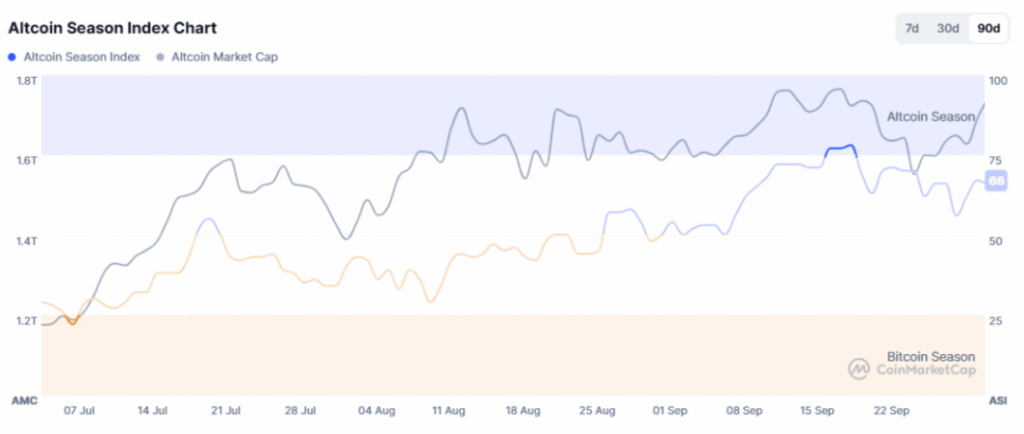 Funciona assim: quando o desempenho de 75% das 50 maiores criptomoedas do mercado for maior que o do bitcoin nos últimos 90 dias, o índice Altcoin Season Index apita.
