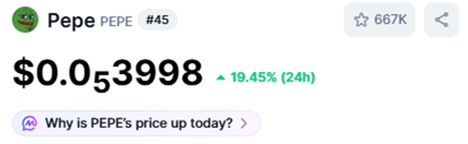 Nesse exemplo citado, investidores que compraram PEPE dentro dessas 24 horas conseguiram retornos de 20% em cima do capital inicial investido. É um número que pode significar muito, a depender das quantias envolvidas.