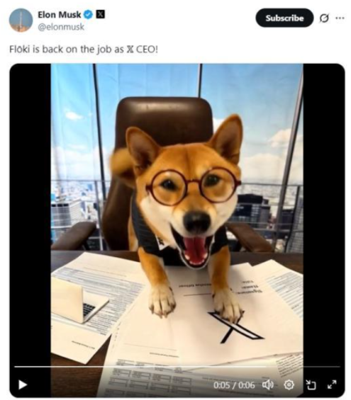 Como a famigerada Dogecoin (DOGE), também hypada por Musk, sua irmã mais nova, a Floki (FLOKI) também é uma meme canina.