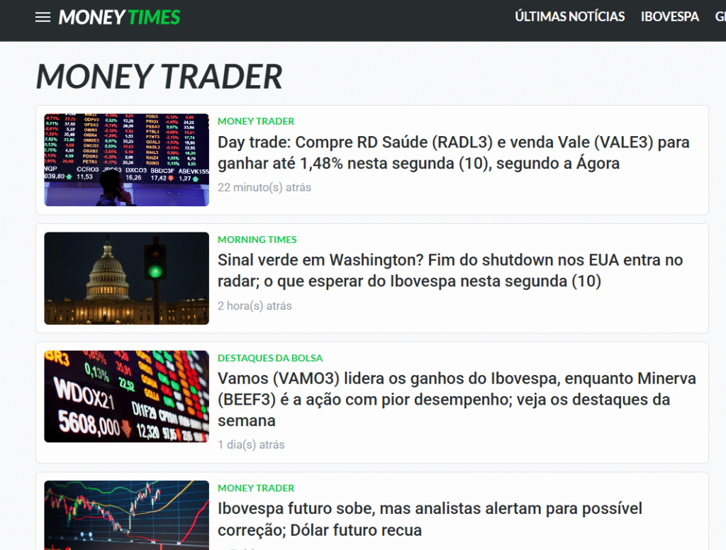 - Quadro diário na newsletter do Money Times, com as movimentações mais importantes do dia.