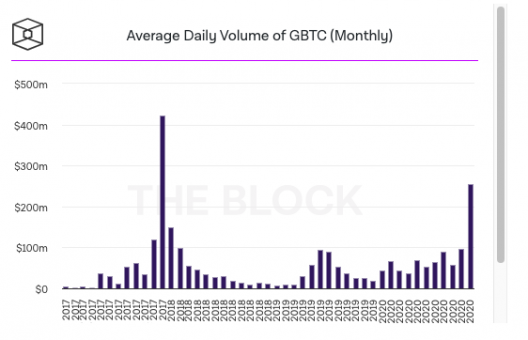 Prova disso é o aumento do volume médio negociado diariamente no produto de investimento em Bitcoin da Grayscale, que subiu mais de 165% em novembro em comparação ao mês anterior, segundo dados compilados pelo The Block.