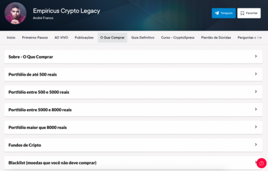 Além disso, os assinantes de sua série possuem acesso a um curso sobre criptomoedas chamado CriptoXpress, em que aprendem tudo para se tornarem experts no assunto.