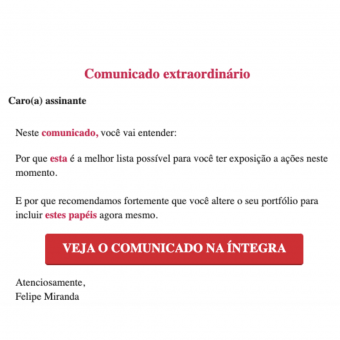 “Neste comunicado, você vai entender o porquê de esta ser a melhor lista possível para você ter exposição a ações neste momento. E o porquê de recomendarmos que você altere o seu portfólio para incluir estes papéis agora mesmo.”
