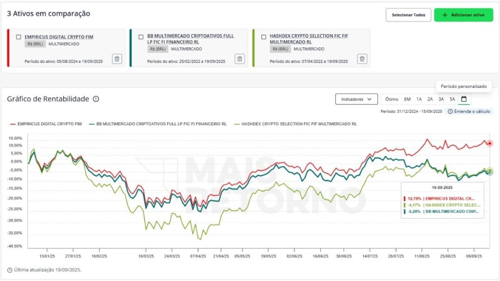 **Comparação do Empiricus Digital Crypto FIF Multimercado com os seguintes fundos: BB Criptoativos Full Resp Limitada FIF CIC Multimercado LP; Hashdex Crypto Selection Resp Limitada FIF CIC Multimercado