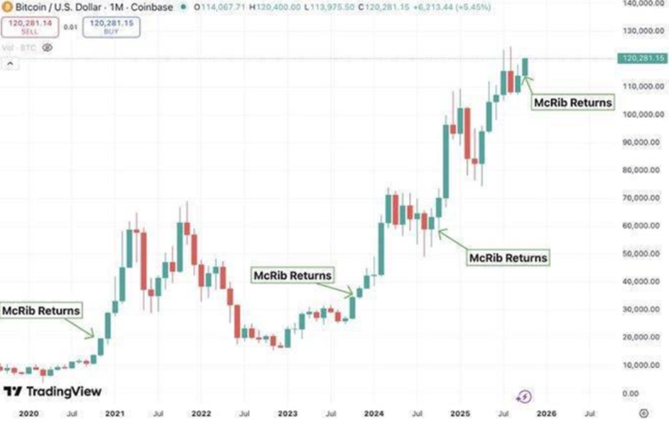 De forma curiosa, durante vários anos, o retorno do McRib tem sido ligado a momentos de valorização do bitcoin. O fenômeno ocorreu em 2017, 2020 e 2021: