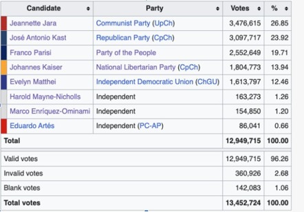 Trata-se de um cenário muito distinto daquele observado em 2021, quando Kast liderou o primeiro turno, mas acabou derrotado por Gabriel Boric na etapa final.