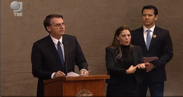No discurso de diplomação, o presidente eleito, Jair Bolsonaro, prometeu hoje (10) governar para todos, sem distinção de raça, cor, renda, religião e sexo. Bolsonaro pediu a confiança daqueles que não votaram nele. Também afirmou que o voto é um “compromisso inquebrantável”. Segundo ele, a construção de uma nação mais justa depende da “ruptura de práticas que retardaram o progresso no país”, como mentiras e manipulação.