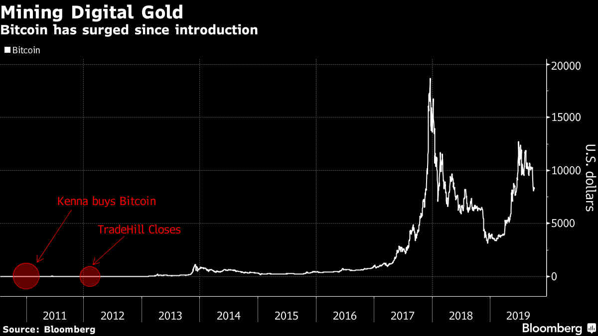 Kenna, de 37 anos, disse que possui metade de um Bitcoin, avaliado em cerca de US$ 4.000. Antes tinha milhares, inicialmente comprados por centavos do dólar. Kenna comandou a TradeHill Inc – a primeira bolsa de criptomoedas dos EUA – e negociava 25% de todas as transações globais de Bitcoin. Entrou no setor não para ganhar dinheiro, mas para mudar o mundo, disse Kenna – e ficou desiludido nos últimos anos porque, em vez de revolucionar os pagamentos e desafiar o sistema bancário, as criptomoedas passaram a ser usadas para especulação.