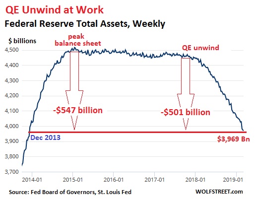 Somente em fevereiro, a autoridade monetária vendeu US$ 57 bilhões de títulos, levando seu balanço a casa aproximada de US$ 3,96 bilhões – menor patamar desde dezembro de 2013. Através da normalização de seu balanço, o Fed agora já se desfez de US$ 501 bilhões.