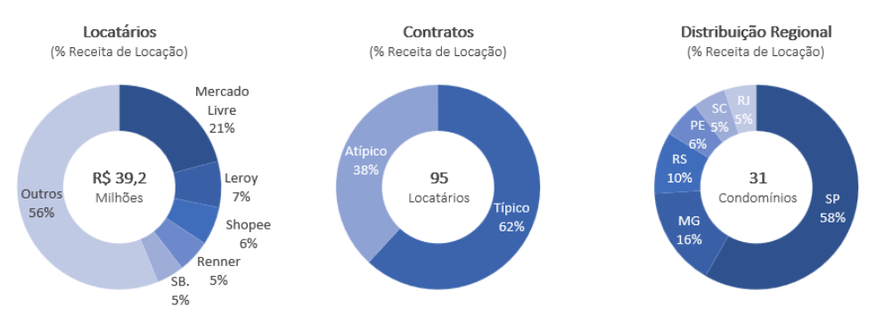 A carteira de locatários passa a ser composta por 95 companhias diferentes, sendo que 38% da receita provém de contratos atípicos.