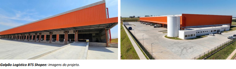 O contrato de locação com a Shopee também é atípico, com prazo inicial de 10 anos. O aluguel mensal é de aproximadamente R$ 1,03 milhão, corrigido inicialmente pelo INCC e, posteriormente, pelo IPCA.