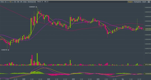 O movimento de preços da IOTA foi bastante surpreendente na última semana. A moeda começou a melhorar a partir de 26 de outubro. No entanto, o movimento atual está indicando uma queda no preço intradiário da IOTA. Especula-se que o preço continue se movendo em torno de US$ 0,27 pelo resto do dia. Vamos dar uma olhada no gráfico intradiário.