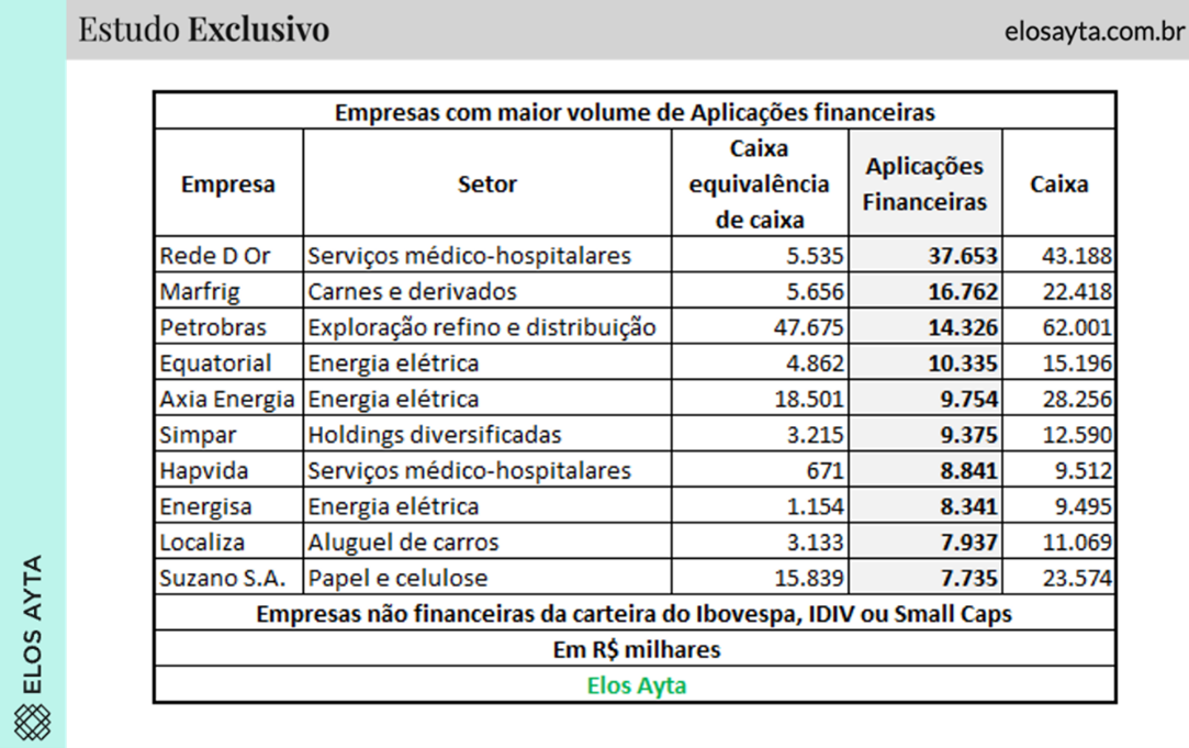 2- Onde o dinheiro trabalha: empresas com maior volume de aplicações financeiras
