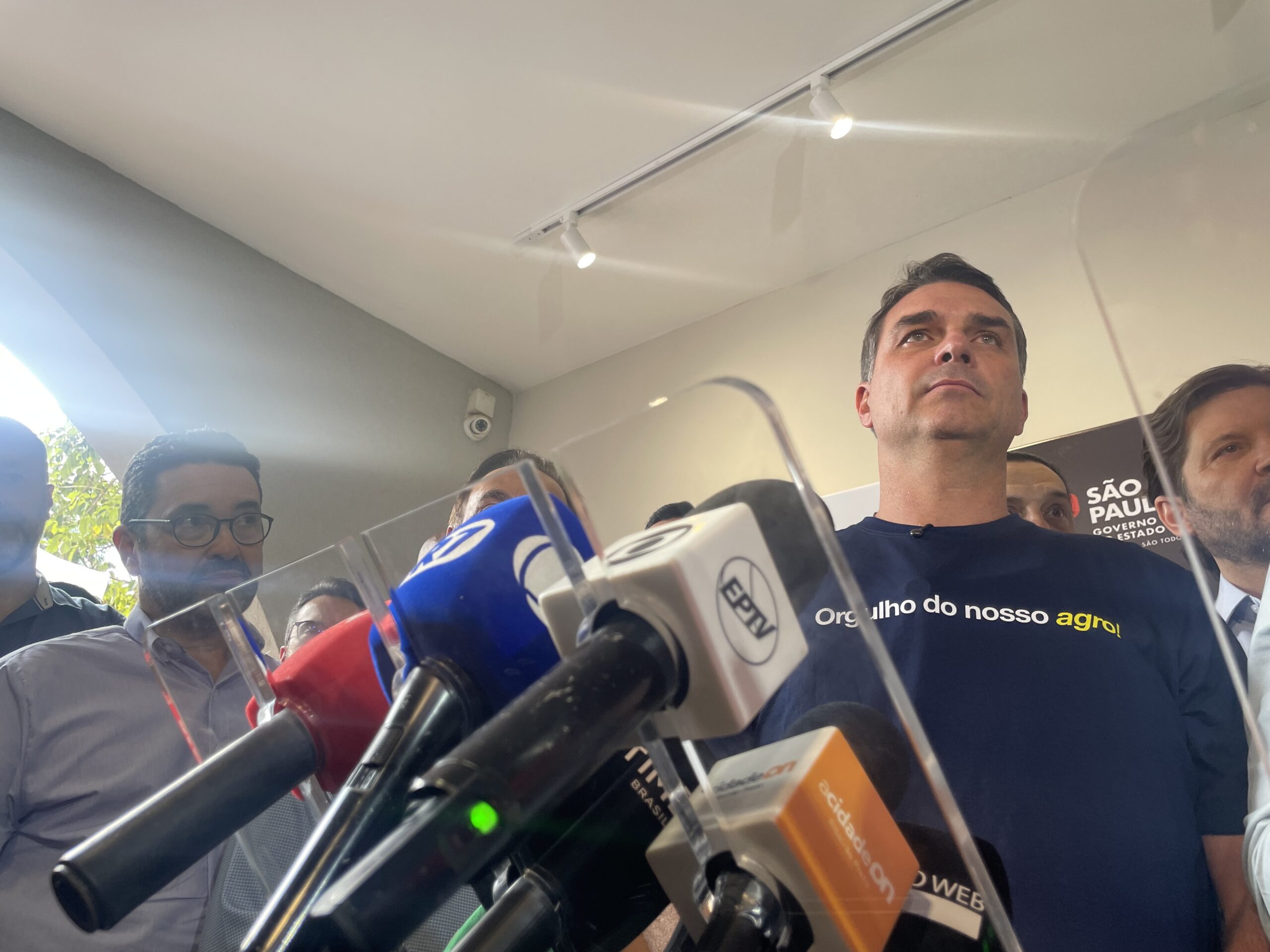 Ao lado do governador de São Paulo e candidato à reeleição no Estado, Tarcísio de Freitas (Republicanos), Flávio Bolsonaro afirmou que a crítica do presidente do PL, Valdemar Costa Neto, sobre a condução política do governador de São Paulo foi “muito infeliz”