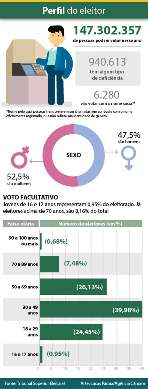 Já o número de eleitores com mais de 70 aumentou 11% em relação a 2104. De acordo com o Tribunal Superior Eleitoral (TSE), 12 milhões de pessoas nessa faixa etária estão aptas a votar em 2018.