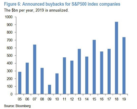 Já em relação à segunda discrepância, o JPMorgan pondera que, em 2018, a recompra de ações pelas empresas e a emissão de títulos corporativos corroboraram para as altas vistas no mercado acionário no ano passado. Nos cinco primeiros meses de 2019, o volume de recompra de ações está 20% inferior ao visto no mesmo período do ano passado.