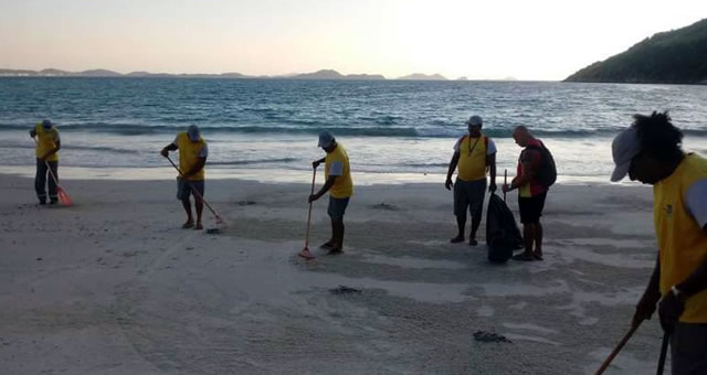 A prefeitura de Arraial do Cabo, que teve o maior número de praias atingidas pela mancha de óleo, informou que continua a limpeza na areia da Prainha e no Pontal do Atalaia, com a participação de mais de 40 voluntários e equipes da Petrobras, com o apoio de equipamentos e técnicos, e que grande parte do óleo que chegou à areia já foi recolhida.