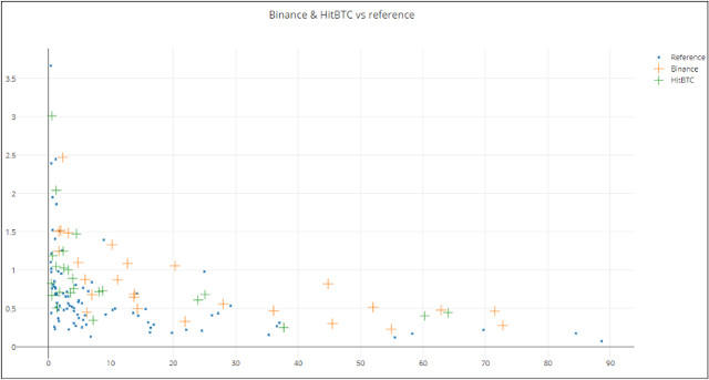 HitBTC & Binance versus referência