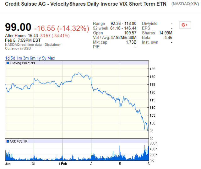 A queda expressiva de 84% de um índice conhecido por XIV – VelocityShares Daily Inverse VIX Short Term – está literalmente tirando o sono dos investidores que tiveram uma cansativa segunda-feira em que o índice Dow Jones terminou em baixa de 4,6%, a maior queda desde 2011.