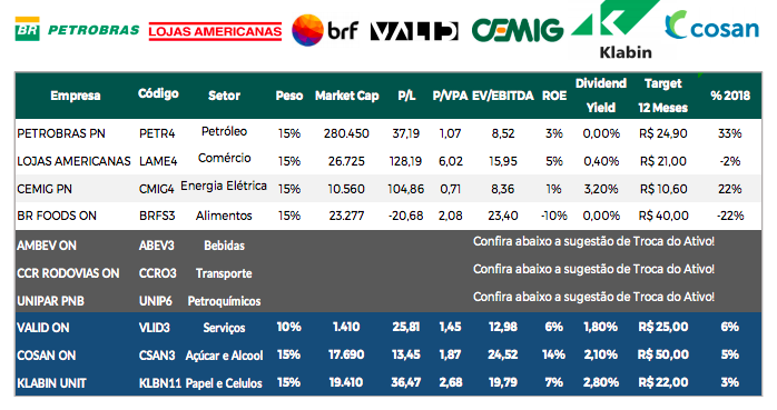 As ações de Unipar (UNIP6), Ambev (ABEV3) e CCR (CCRO3) foram substituídas pelos papéis de Klabin (KLBN11), Valid (VLID3) e Cosan (CSAN3).