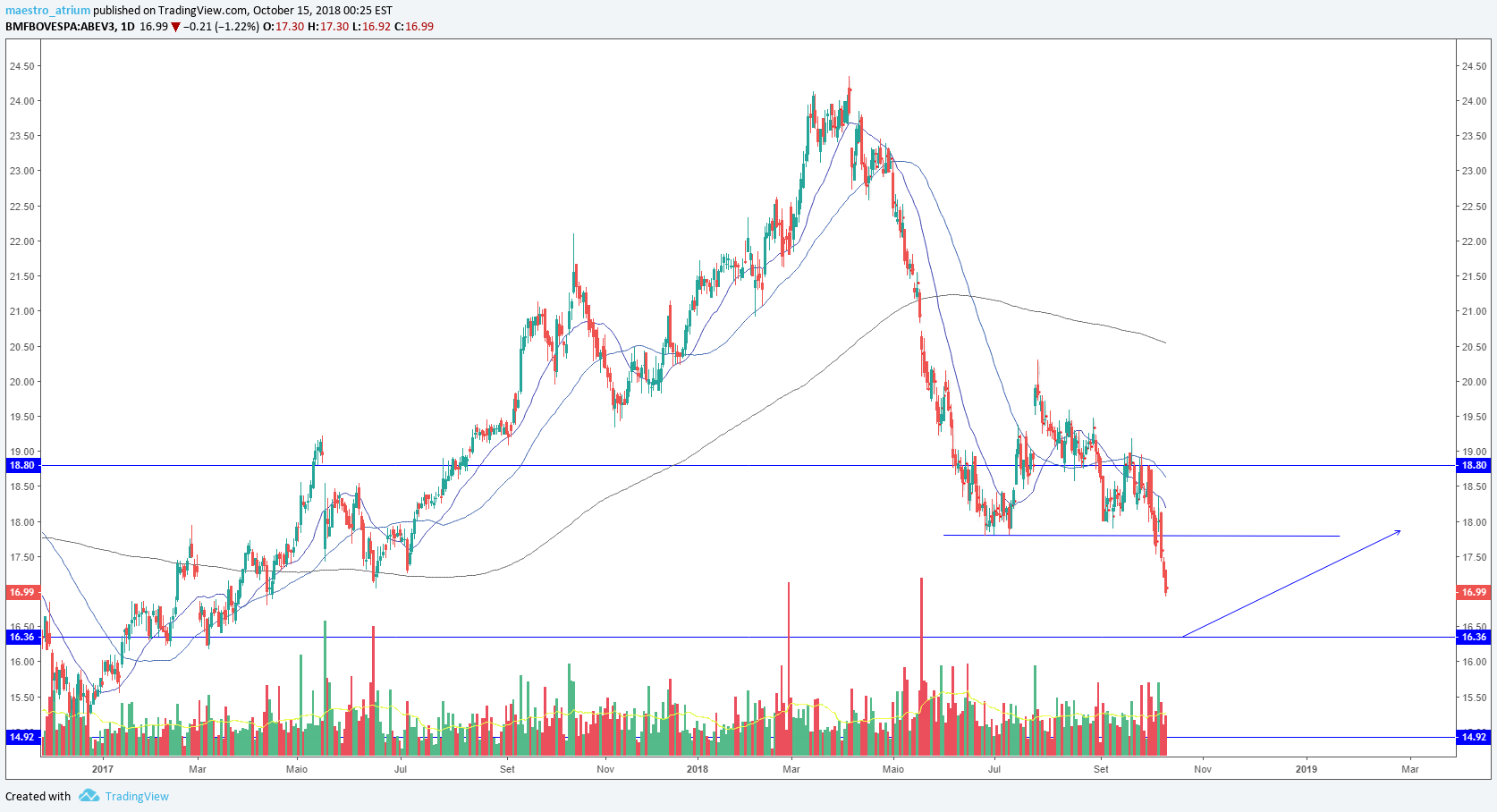 Se o índice segurar acima dos 82000, ABEV3 abre oportunidade de compra na faixa de 16,35.