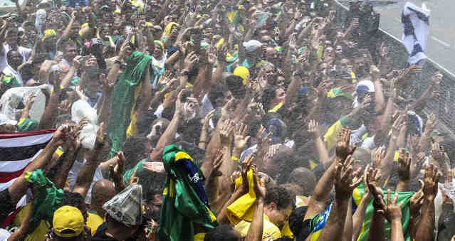 Logo após receber a faixa presidencial de Michel Temer, o presidente Jair Bolsonaro discursou no Parlatório do Palácio do Planalto, de frente para o público que lotava a Praça dos Três Poderes. Recepcionado aos gritos de “mito” e “o capitão chegou”, Bolsonaro propôs a criação de um “movimento para restabelecer padrões éticos e morais que transformarão nosso país”. Ele defendeu ainda que “a corrupção, os privilégios,as vantagens, os favores politizados, partidarizados” acabem e fiquem “no passado para que o governo e a economia sirvam de verdade para a nação”.