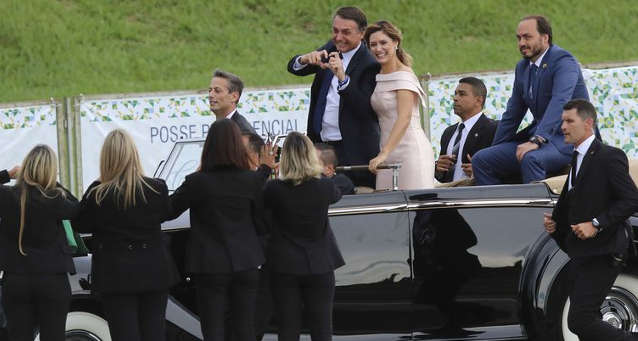 Bolsonaro e a mulher deixaram o Congresso aos gritos do público de “capitão chegou”. Eles fizeram novo desfile em carro aberto até o Palácio do Planalto. Lá, o casal junto com o vice Hamilton Mourão e a esposa subiram a rampa do Planalto, onde foram recebidos por Michel Temer e Marcela Temer.