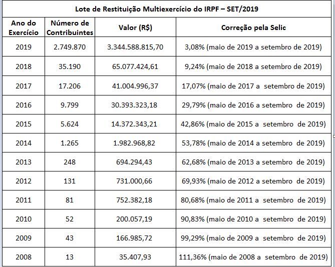A Receita Federal liberou nesta segunda-feira (9) a consulta para o quarto lote de restituições do Imposto sobre a Pessoa Física (IRPF) 2019. Nesta leva, também estão incluídas as restituições residuais de 2008 a 2018.