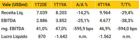 A XP Investimentos atualizou os números da Vale (VALE3), incorporando a prévia do 1º trimestre de 2020 nas estimativas da mineradora.